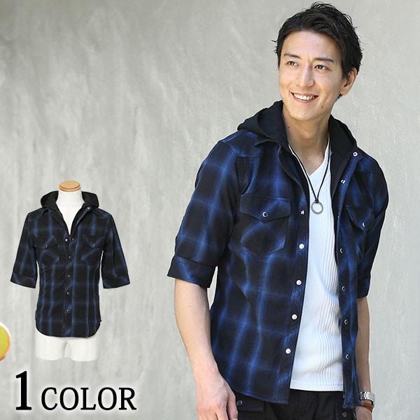 オンブレチェック長袖セミロングシャツパーカー メンズファッション通販メンズスタイル